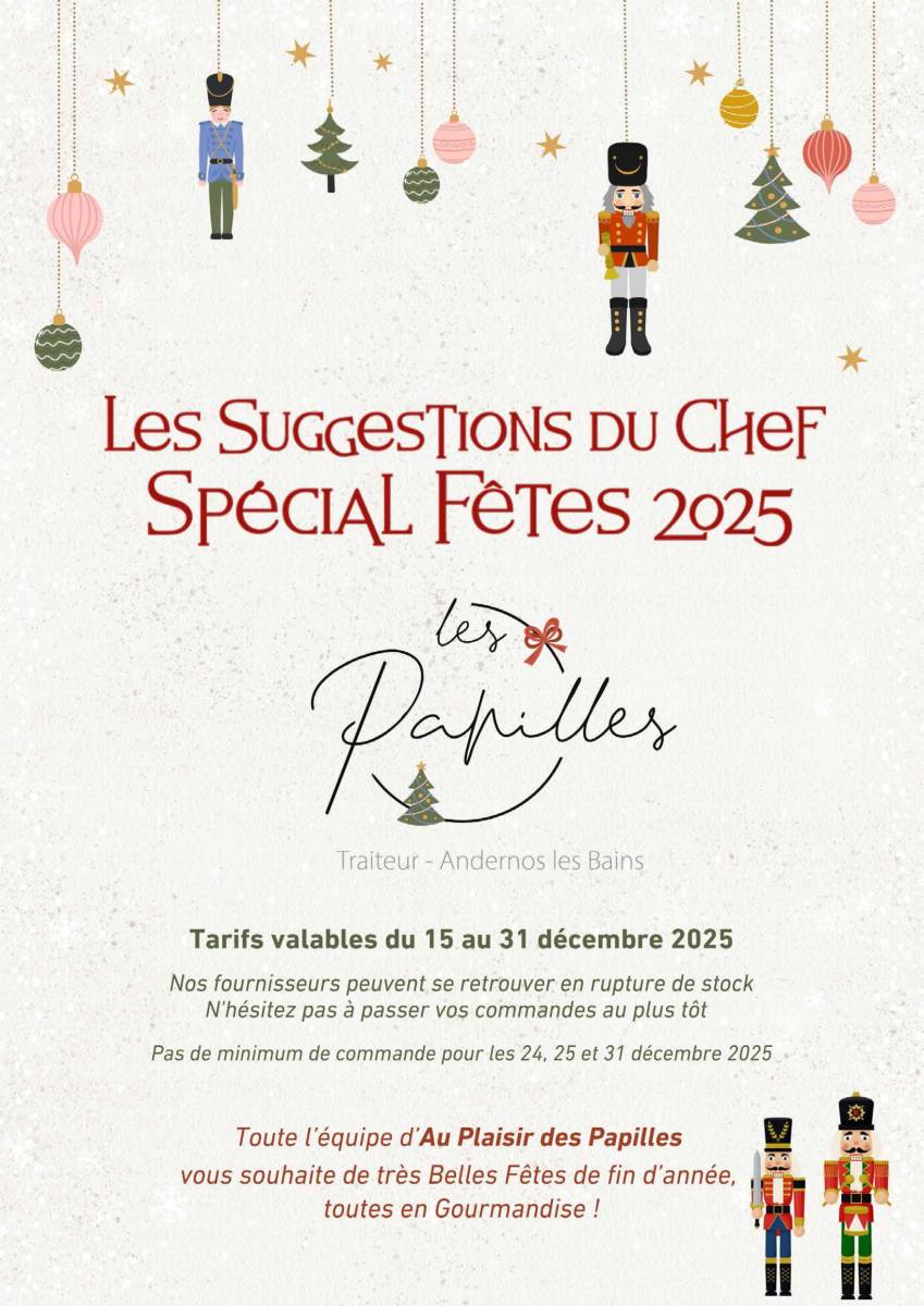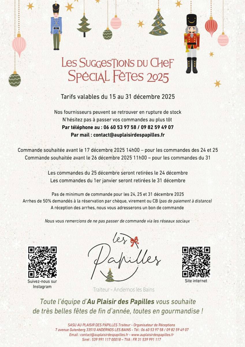 Carte traiteur Au Plaisir des Papilles Fête de fin d'année 2025
